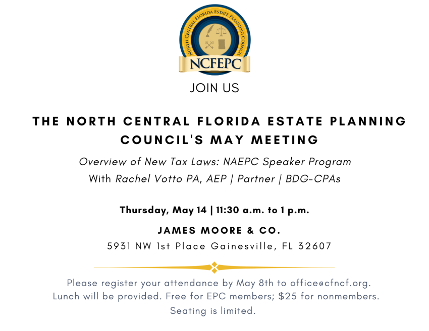 North Central Florida Estate Planning Council May Membership Meeting